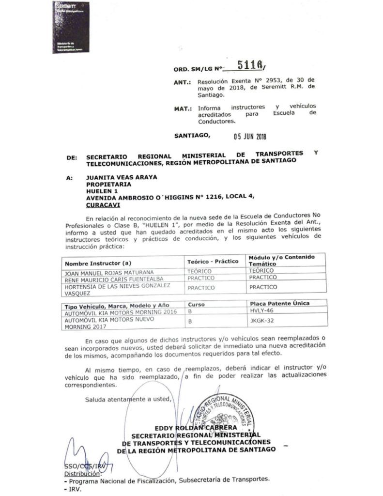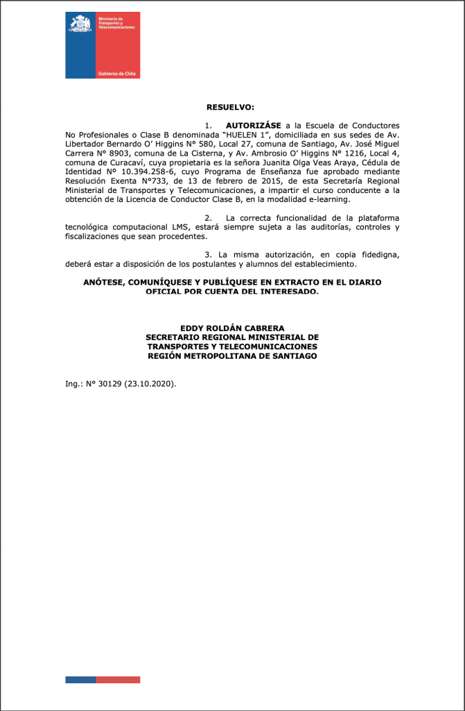 Esto nos da el respaldo del Ministerio de Transportes y Telecomunicaciones para entregar el mejor servicio, calidad y profesionalismo de nuestros conductores, tutores, sistema de trabajo, garantizando así, que tú experiencia de manejo sea de excelencia y, para nosotros, ser líderes en el país.