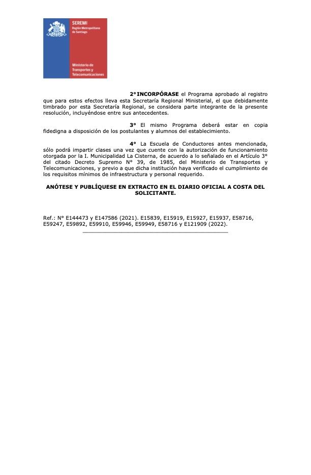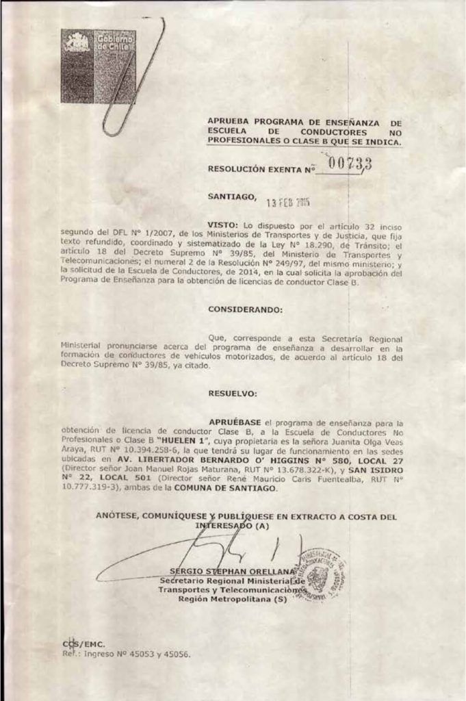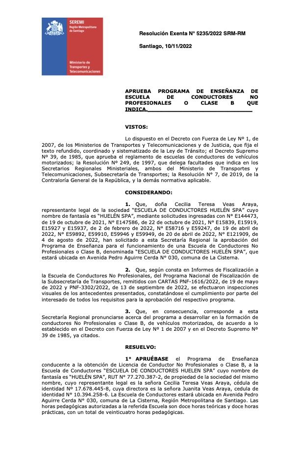 Nuestra Escuela tiene el honor de tener la aprobación del Programa de Enseñanza para la obtención de licencias de conductor Clase B.
